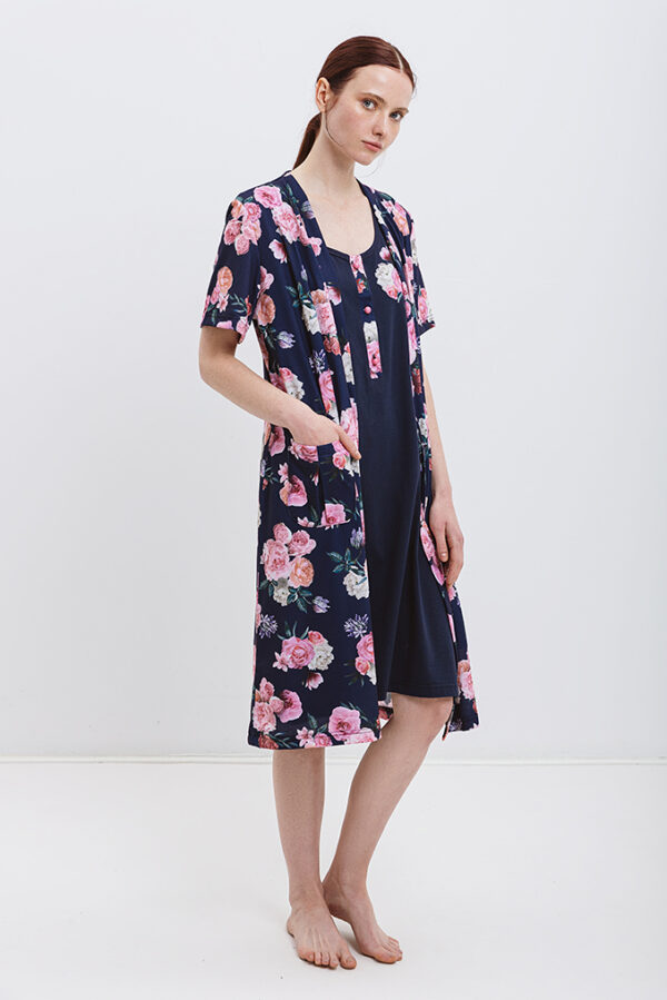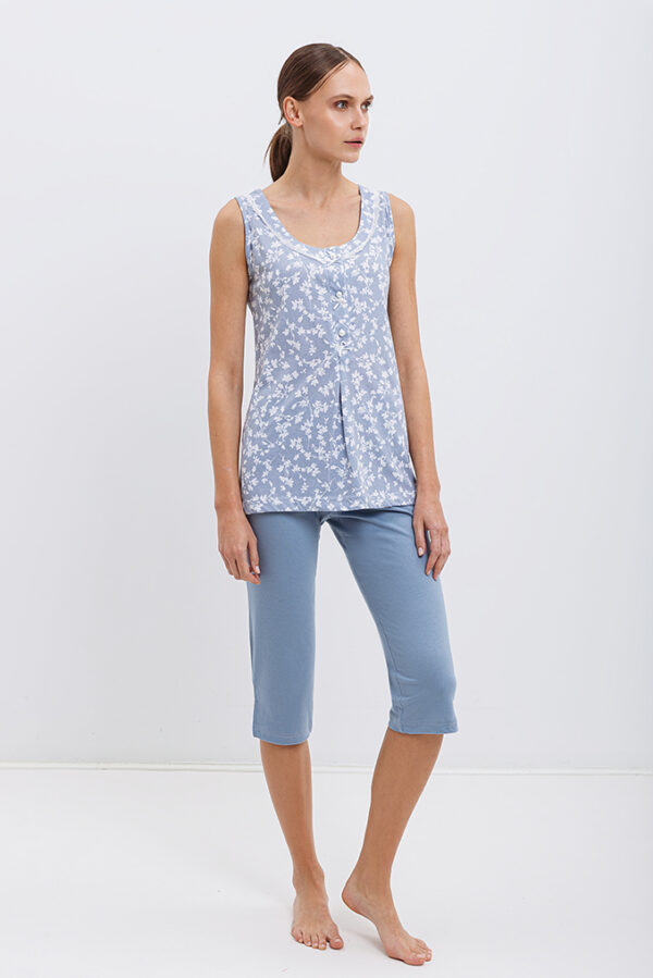 ΓΥΝΑΙΚΕΙΑ ΠΥΤΖΑΜΑ ΜΟΝΟΧΡΩΜΗ ΜΕ ΚΟΥΜΠΙΑ ΚΑΙ ΦΛΟΡΑΛ ΠΑΝΤΕΛΟΝΙ