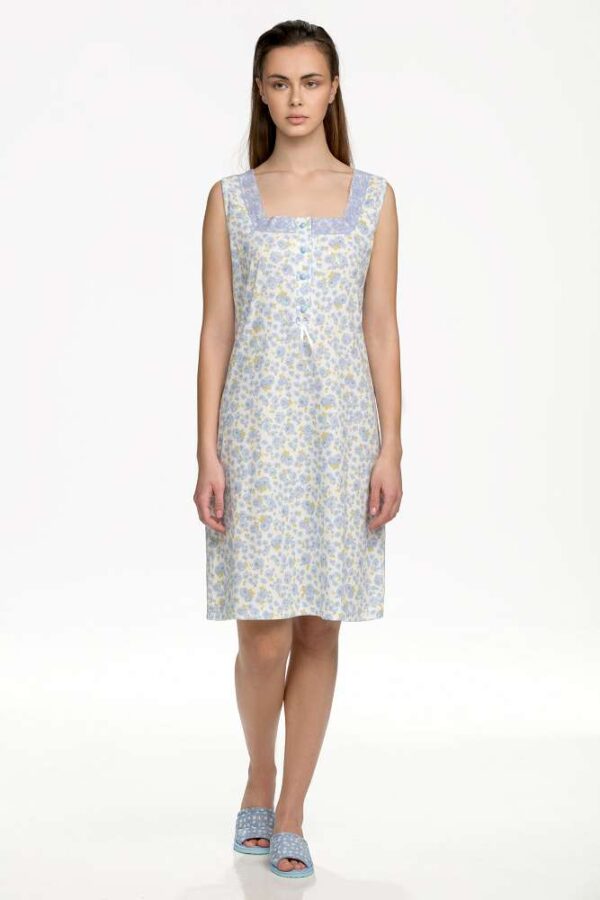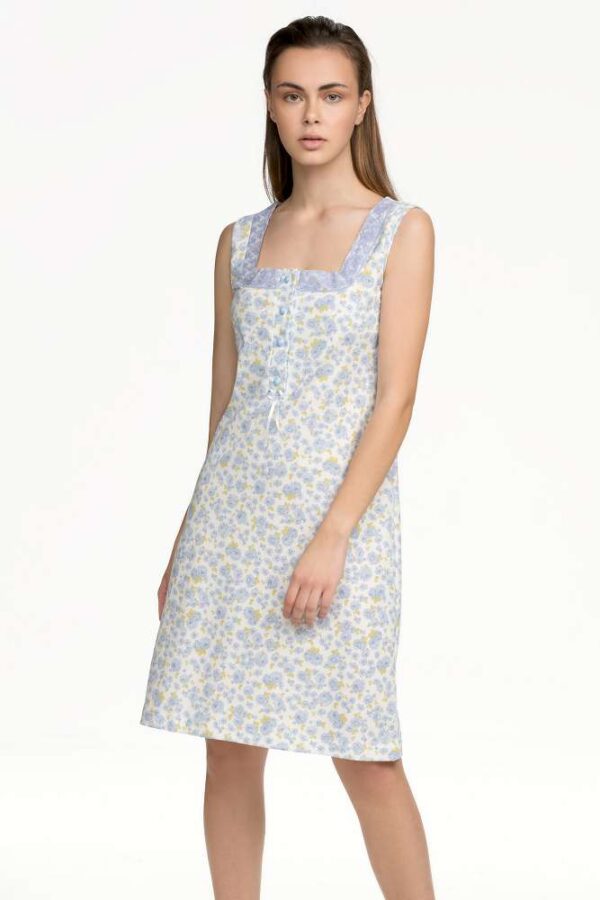 SLEEVELESS NIGHTGOWNS FABRIC PRINTED WITH LACE AND BUTTONS