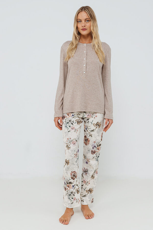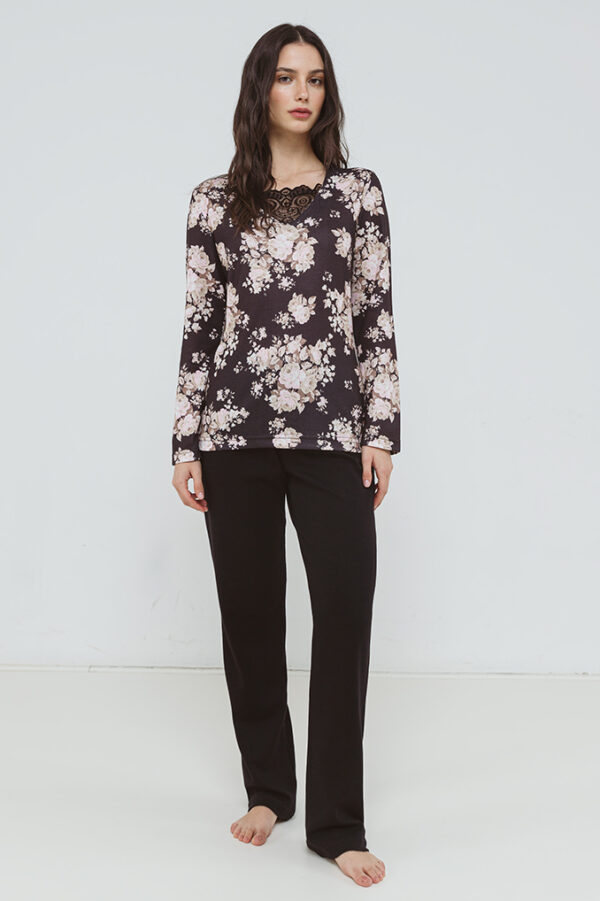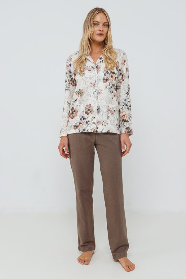 ΓΥΝΑΙΚΕΙΑ ΠΥΤΖΑΜΑ ΦΛΟΡΑΛ ΜΕ ΜΟΝΟΧΡΩΜΟ ΠΑΝΤΕΛΟΝΙ