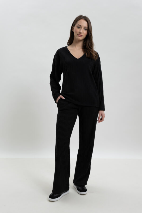 • Bottom: Παντελόνα σε loose γραμμή (wide leg) που προσφέρει απόλυτη ελευθερία κινήσεων και αέρινη αίσθηση.